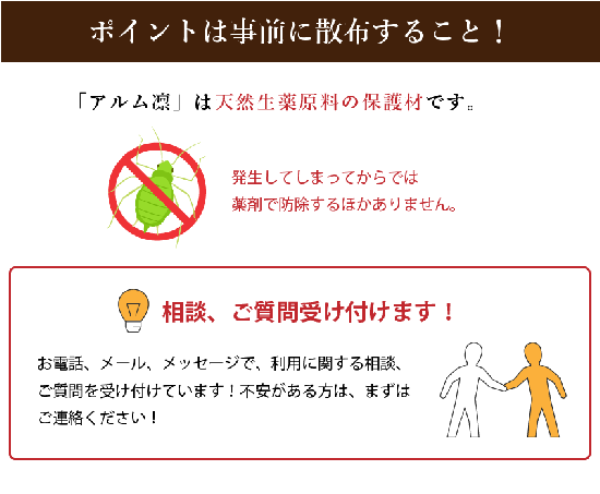 2.農薬との併用の場合は交互に単独施用することで農薬成分の減少にもなります。
